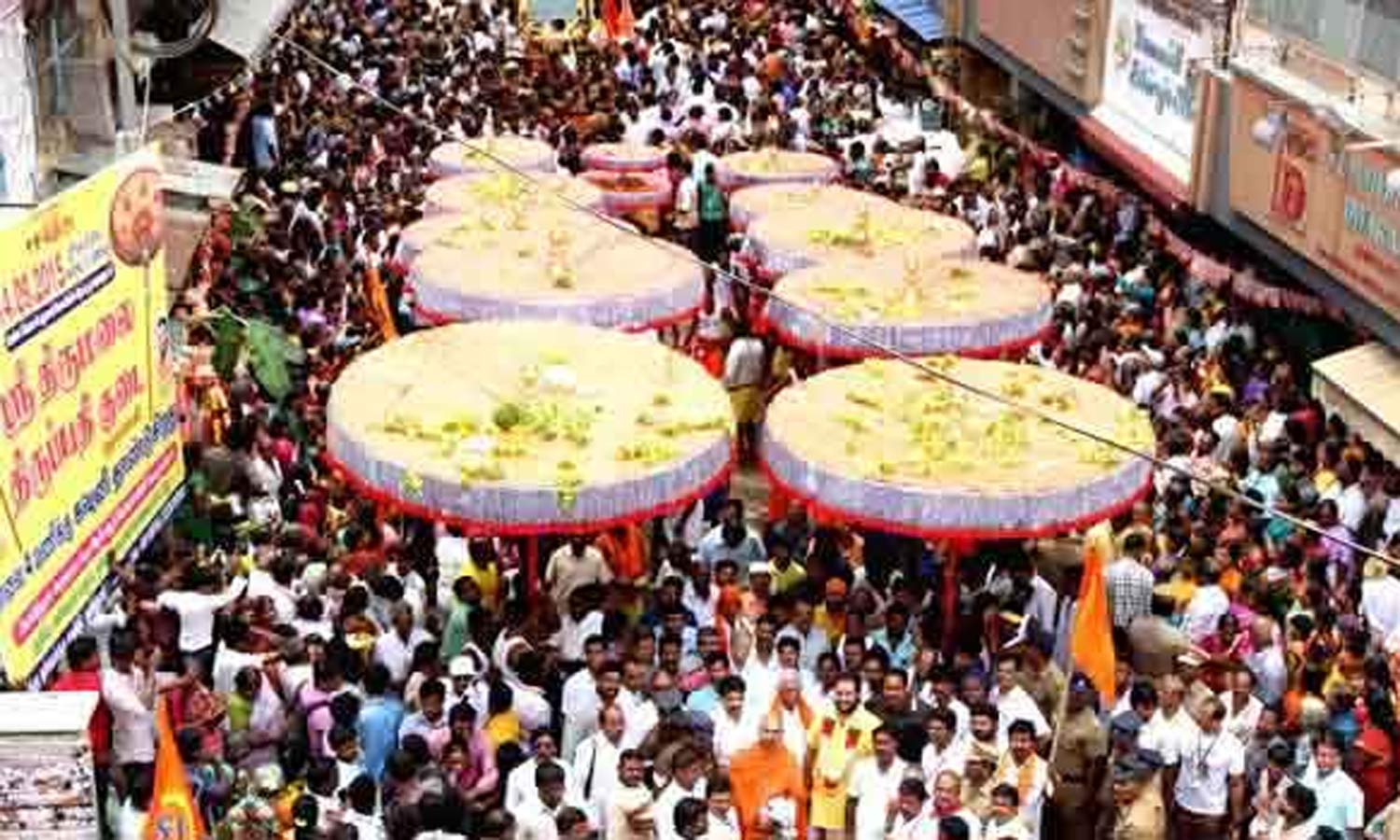 இந்த திருக்குடைகள் ஊர்வலத்தில் நூற்றுக்கணக்கான பக்தர்கள் கலந்து கொண்டு கோவிந்தா முழக்கமிட்டனர். மேள தாளங்கள் முழங்க வெண் பட்டு திருக்குடைகள் ஊர்வலத்தை மக்கள் பூக்கள் தூவி வரவேற்றனர், உடன் பெருமாளின் தசாவதாரங்கள், கோமாதா உள்ளிட்ட சிலைக்கும் ஊர்வலமாக சென்றன.