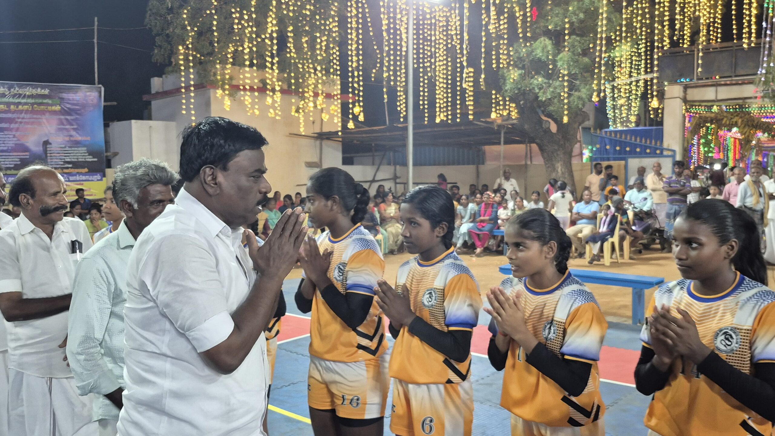 நெல்லை மாவட்டம் பழவூர் அருகே மாநில அளவிலான பெண்களுக்கான மின்னொளி கபடி போட்டியை அதிமுக முன்னாள் எம்பியும், பல்கலைக்கழக கபடி விளையாட்டு வீரருமான சௌந்தரராஜன் துவக்கி வைத்தார்.