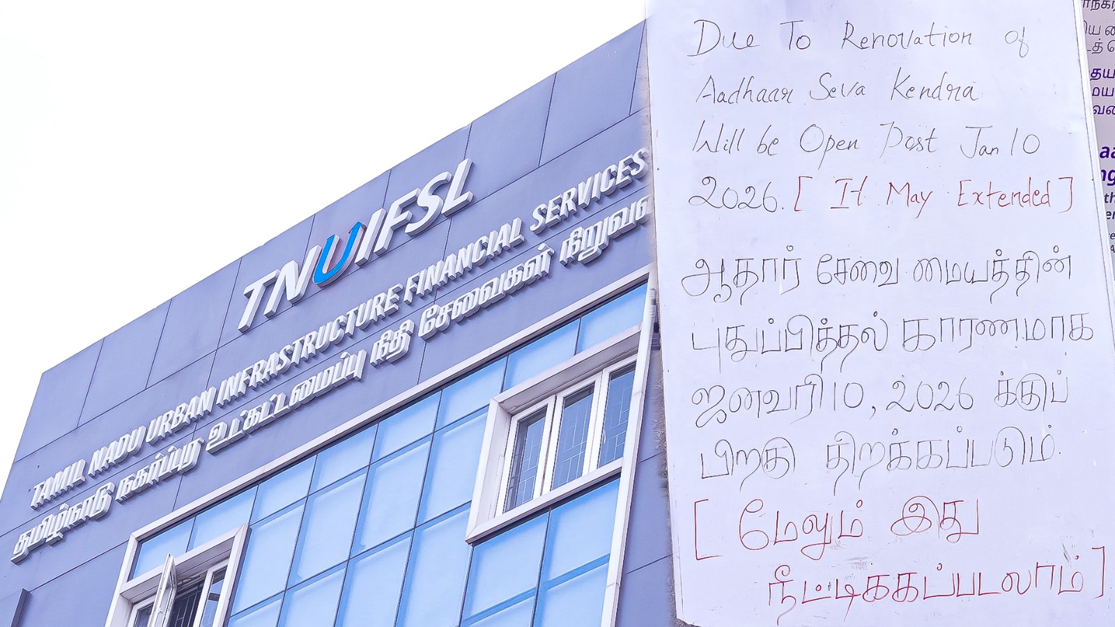 கோயம்பேட்டில் இயங்கி வந்த மத்திய அரசின் ‘ஆதார்’ சேவை மையம், அண்ணா நகருக்கு மாற்றப்படுவதற்காக டிசம்பர் மாத தொடக்கத்திலேயே அறிவிக்கப்பட்டது. இதனால், கோயம்பேடு அலுவலகத்தில் ஆதார் சேவைகள் நிறுத்தப்பட்டன. அலுவகம் மாற்றப்பட்ட இடமான அண்ணா நகர், கிழக்கு 3-வது அவென்யூவில் உள்ள தமிழ்நாடு நகர்ப்புற உட்கட்டமைப்பு நிதி சேவைகள் நிறுவன (TNUIFSL) கட்டிடத்தின் முதல் மாடியில் டிசம்பர் 15 முதல் செயல்படும் என தெரிவிக்கப்பட்டிருந்த நிலையில், டிசம்பர் 27 ஆம் தேதியான இன்று வரை அந்த அலுவலகத்தின் அடிப்படை உள்கட்டமைப்பு பணிகள் கூட முடிக்கப்படாமல் உள்ளது. மேலும், அந்த கட்டிடத்தின் வெளியில் வைக்கப்பட்டுள்ள அறிவிப்பு பலகையில், “ஆதார் சேவை மையத்தின் புதுப்பித்தல் காரணமாக ஜனவரி 10 ஆம் தேதிக்கு பிறந்து செயல்படும்” என குறிப்பிடப்பட்டுள்ள கையோடு, “மேலும் இது நீட்டிக்கப்படலாம்” எனவும் குறிப்பிடப்பட்டிருப்பது அங்குவரும் மக்களிடையே அதிருப்தியை ஏற்படுத்தியுள்ளது.