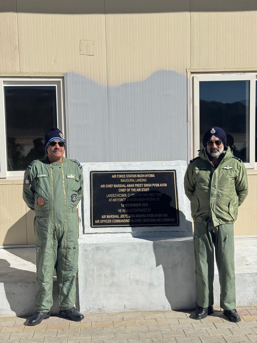 இந்தியாவின் கிழக்கு லடா பகுதியில் சுமார் 13,000 அடி உயரத்தில் புதிதாக அமைக்கப்பட்டுள்ள முத்-நியோமா விமானப்படை நிலையத்தை செயல்படுத்த தொடங்கியுள்ளது. கடந்த நவம்பர் (12- 13ஆம் தேதி) 2025, அன்று விமானப்படை தலைவர் மார்ஷல் ஏபி சிங் C-130J சூப்பர் ஹெர்குலஸ் போக்குவரத்து விமானத்தின் தொடக்க தரையிறக்கத்தை நிகழ்த்தினார். இந்த விமானப்படை நிலையம் இந்திய – சைனா எல்லைக்கோட்டில் இருந்து வெறும் 25 முதல் 30 கிலோமீட்டர் தூரத்தில் உள்ளது குறிப்பிடத்தக்கது.
