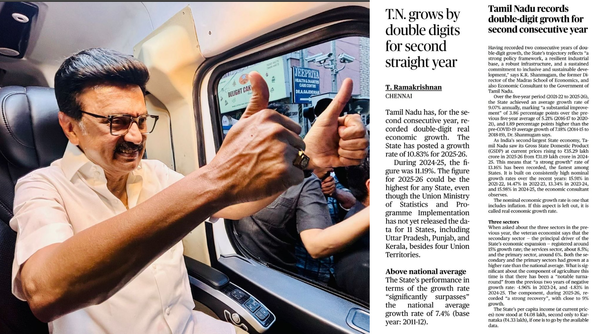 முதல் மூன்றாண்டுகளில் அடித்தளம் அமைத்து, இப்போது தொடர்ந்து இரண்டாண்டுகளாக இரட்டை இலக்க வளர்ச்சி என்ற சாதனையை நிகழ்த்தியுள்ளோம். சிறப்பான நமது நிர்வாகத்திற்கு, உழைப்பால் துணை நின்ற தமிழ்நாட்டு மக்களுக்கு நன்றி!