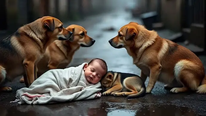 நாட்டின் பல்வேறு பகுதிகளில் தெருநாய்கள் தாக்கி மக்கள் காயமடைவது வழக்கம். வீட்டில் தூங்கும் குழந்தைகள் கூட நாய்களின் தாக்குதலுக்கு பலியாகி வரும் நேரத்தில், தெருநாய்கள் ஒரு குழந்தையின் பாதுகாவலர்களாக மாறிய அதிசய சம்பவம் மேற்குவங்கத்தில் நிகழ்ந்துள்ளது. பிறந்த சில மணி நேரங்களிலேயே பச்சிளம் குழந்தையை பெற்றோர்கள் விட்டுச்சென்ற நிலையில், மீட்புக் குழு வரும் வரை, இரவு முழுவதும் தெருநாய்கள் பாதுகாத்துள்ளன.