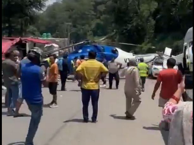நட்டநடு சாலையில் ஹெலிகாப்டரை தரையிறக்க முயன்றபோது விமானிக்கு சிறிது காயம் ஏற்பட்டது. அவர் உடனடியாக மருத்துவமனைக்கு அழைத்துச் செல்லப்பட்டார். ஆனால் நற்செயலாக பயணிகள் 5 பேருக்கும் எவ்வித பாதிப்பும் ஏற்படவில்லை.