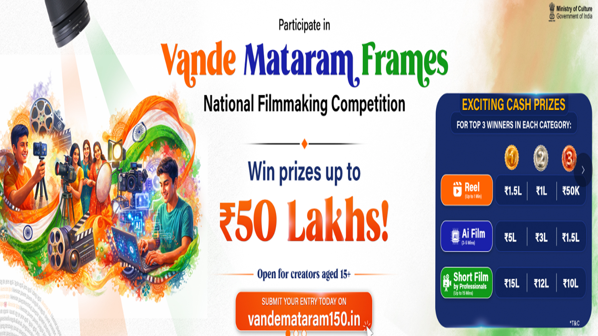 வந்தே மாதரம் 150 – தேசிய திரைப்பட உருவாக்கப் போட்டி – ரூ.50 லட்சம் வரை வெல்ல அரியவாய்ப்பு
