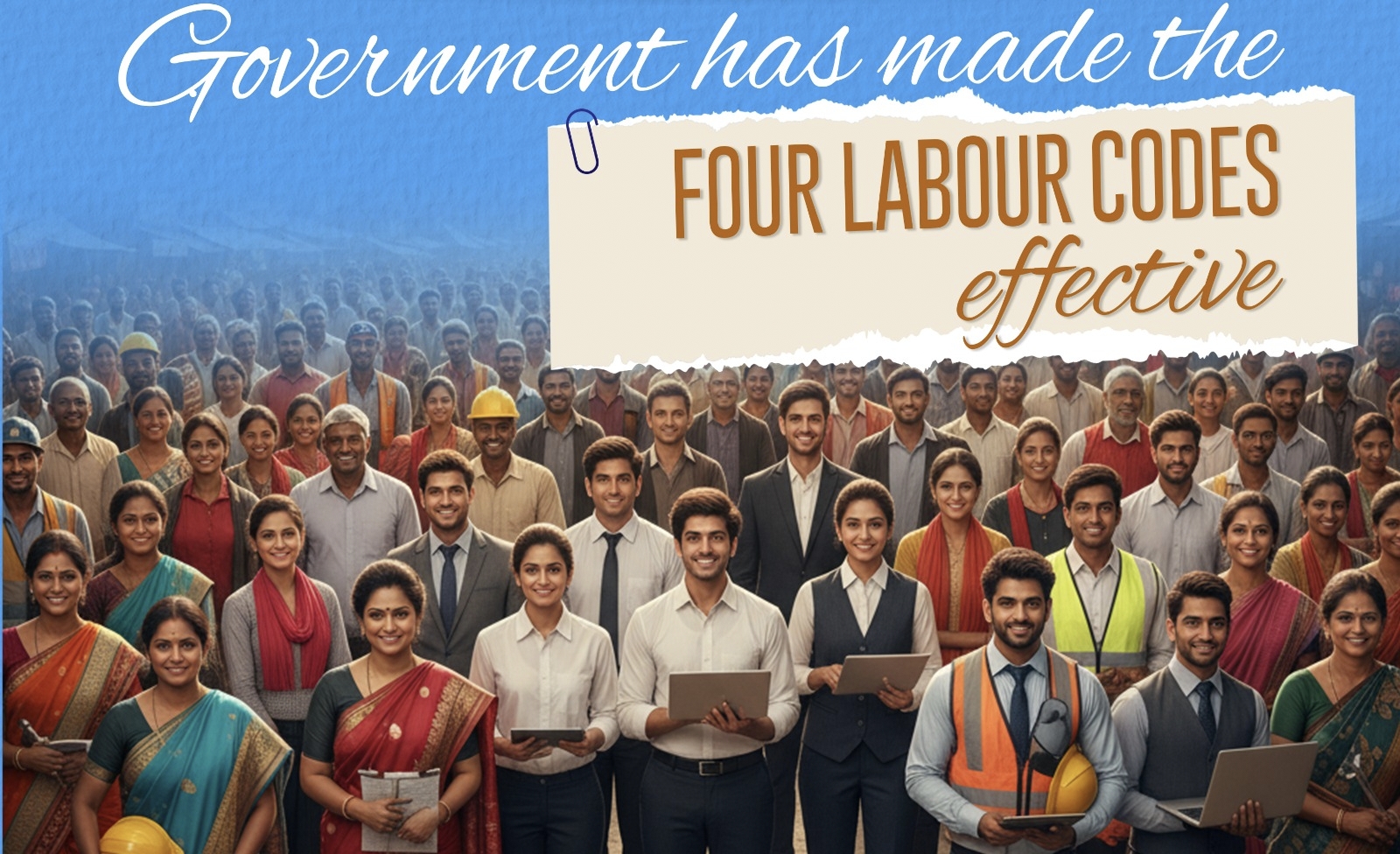 “ ஒரு வரலாற்றுச் சிறப்புமிக்க முடிவில், இந்திய அரசு நான்கு தொழிலாளர் குறியீடுகளான – ஊதியக் குறியீடு,2019 , தொழில்துறை உறவுகள் குறியீடு,2020 , சமூகப் பாதுகாப்பு குறியீடு,2020 மற்றும் தொழில் பாதுகாப்பு, சுகாதாரம் மற்றும் பணி நிலைமைகள் குறியீடு,2020 ஆகியவை நவம்பர் 21, 2025 முதல் அமலுக்கு கொண்டு வருகின்றது . இது தற்போதுள்ள 29 தொழிலாளர் சட்டங்களை பகுத்தறிவு செய்யும் நோக்கில் இயற்றப்பட்டுள்ளது.