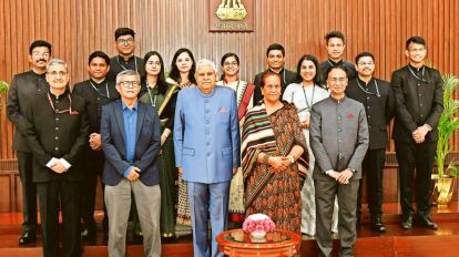 டெல்லியில் இந்திய பாதுகாப்பு பிரிவை சேர்ந்த பயிற்சி பெறும் அதிகாரிகள் பங்கேற்ற நிகழ்ச்சி ஒன்றி துணை குடியரசுத் தலைவர் ஜெகதீப் தன்கர் கலந்து கொண்டார்.