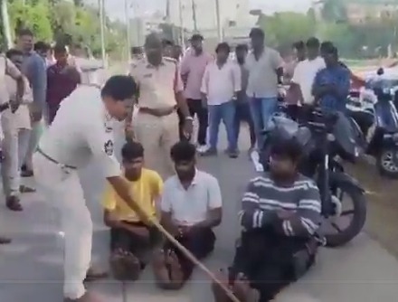 தெனாலியைச் சேர்ந்த ஜான் விக்டர், ராகேஷ், சேக் பாபுலால் ஆகிய மூன்று இளைஞர்களும் கஞ்சா போதையில் போலீஸ் கான்ஸ்டபிள் சிரஞ்சீவை தாக்கியதாகக் கூறப்படுகிறது. கான்ஸ்டபிளை தாக்கியதற்காக இளைஞர்கள் மீது வழக்கு பதிவு செய்து, நீதிமன்றத்தில் ஆஜர்படுத்தி சட்டப்படி தண்டனை பெற்றுத் தர வேண்டிய போலீசார், அவர்களை நடுரோட்டில் அமர வைத்து பொதுமக்கள் கண் முன்னே கொடூரமாக லாத்தியால் அடித்து ‘போலீஸ் ட்ரீட்மென்ட்’ கொடுத்தனர்.