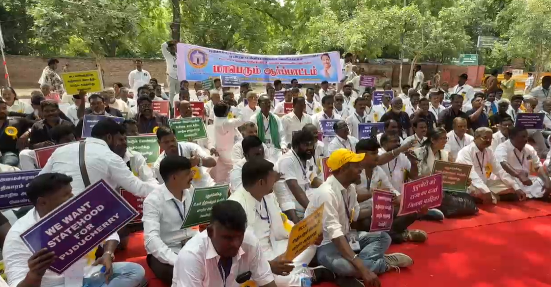 இந்நிலையில் புதுச்சேரிக்கு மாநில அந்தஸ்து வழங்கக்கோரி டெல்லி ஜந்தர் மந்திரில் புதுச்சேரி உருளையன்பேட்டை சட்டமன்ற தொகுதியின் உறுப்பினர் நேரு தலைமையில் போராட்டம் நடைபெற்றது.