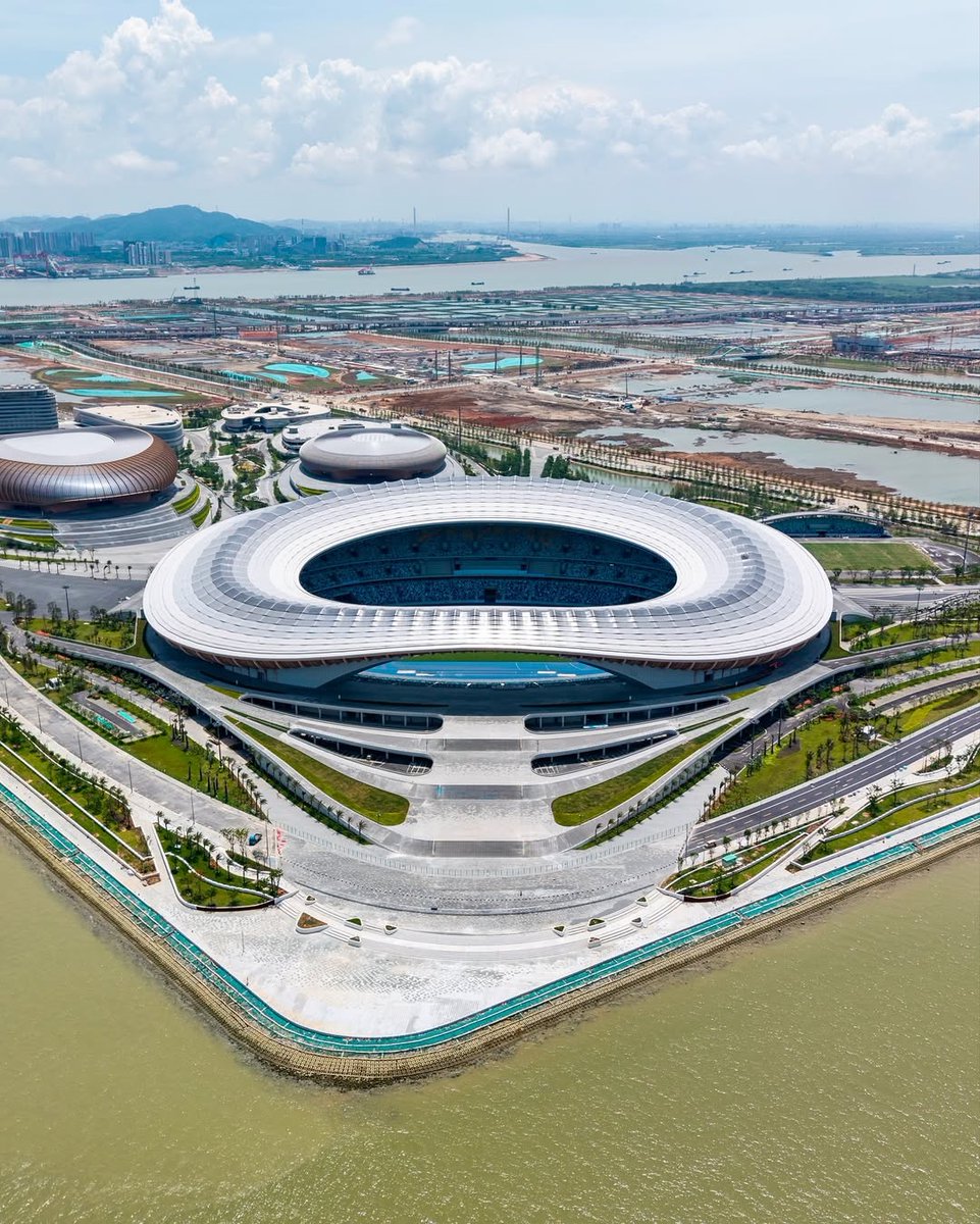 வரலாற்று சிறப்புமிக்க பேர்ல் நதியின் மேற்குக் கரையில், குவாங்சோவின் நான்ஷா மாவட்டத்தின் தெற்கு முனையில் ஜஹா கட்டிடக் கலைஞர்களால் வடிவமைக்கப்பட்ட கிரேட்டர் பே ஏரியா விளையாட்டு மையம் அனைவரின் கவனத்தையும் ஈர்த்து வருகிறது.