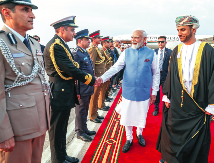 ஜோர்டான் மற்றும் எத்தியோப்பியா பயணத்தை முடித்துக் கொண்டு ஓமன் சென்ற பிரதமர் மோடிக்கு ராணுவ அணிவகுப்பு மரியாதையுடன் சிறப்பான வரவேற்பு அளிக்கப்பட்டது. ஓமன் மன்னரும், பிரதமருமான சுல்தான் ஹைதம் பின் தாரிக்கை பிரதமர் மோடி சந்தித்து பேச உள்ளார். ஓமனில் கிடைத்த அன்பான வரவேற்பிற்கு நன்றி என சமூக வலைதளத்தில் பிரதமர் மோடி குறிப்பிட்டுள்ளார். ஓமனில் உள்ள இந்திய சமூகத்தினரின் பாசமும் உற்சாகமும், இந்தியாவிற்கும் ஓமனிற்கும் இடையிலான மக்கள் உறவுகளை பிரதிபலிப்பதாகவும் அவர் தெரிவித்துள்ளார்.
