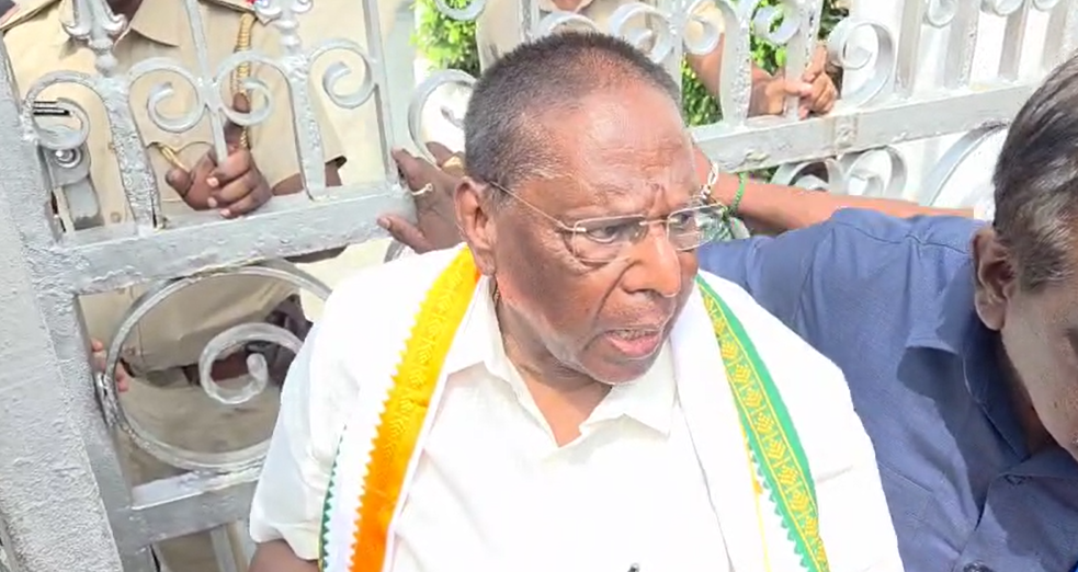 இந்தத் தகவலை அறிந்த காங்கிரஸ் நிர்வாகிகள் முன்னாள் முதல்வருக்கு ஆதரவு தெரிவிக்க ஆளுநர் மாளிகைக்கு வந்தனர். அப்போது போலீசார் அவர்களை உள்ளே அனுமதிக்காமல் ஆளுநர் மாளிகையின் இரண்டு நுழைவாயிலும் தடுப்புகள் அனைத்து தடுத்து நிறுத்தினர். இருந்த போதிலும் தடுப்புகளை மீறி உள்ளே நுழைய காங்கிரசார் முயன்றதால் போலீசாருக்கும், காங்கிரசார் இடையே கடுமையான வாக்குவாதம் ஏற்பட்டது.