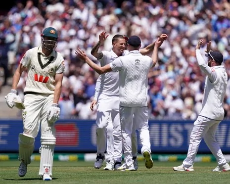 எனவே, ஆஷஸ் பாக்ஸிங் டே டெஸ்டின் முதல் இன்னிங்ஸில் டாஸ் வென்ற இங்கிலாந்து அணி, பந்துவீச்சை தேர்வு செய்தது. அதன்படி முதலில் களமிறங்கிய ஆஸ்திரேலிய பேட்ஸ்மேன்கள் ஒருவர் கூட அரை சதம் அடிக்கவில்லை. தொடக்க வீரர்களாக களமிறங்கிய டிராவிஸ் ஹெட் 12 ரன்களிலும், ஜேக் வெதரால்ட் 10 ரன்களிலும் ஆட்டமிழந்தனர், மார்னஸ் லாபஸ்சென் 6 ரன்களிலும், கேப்டன் ஸ்மித் 9 ரன்களிலும் பெவிலியன் திரும்பினர். ஜோஷ் டங், அட்கின்சன், பிரைடன் கார்ஸின் ஆகியோரின் அபார பந்துவீச்சில் ஆஸி வீரர்கள் ஆட்டமிழந்து பெவிலியன் திரும்பினர். இறுதியாக அந்த அணி, 45.2 ஓவர்களில் 152 ரன்களுக்கு ஆல் அவுட்டானது. ஜோஷ் டங் 5 விக்கெட் எடுத்து அசத்தினார்.