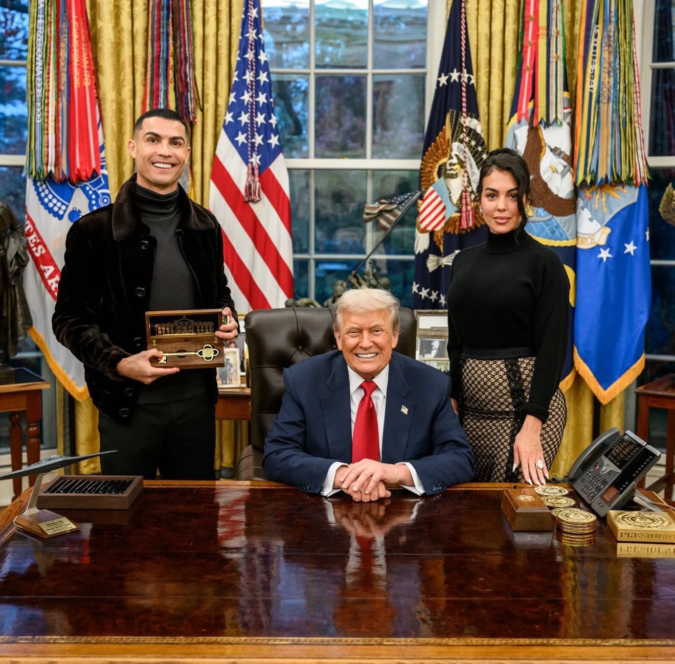 எல்லாவற்றுக்கும் மேலாக ஓவல் ஆபிஸில் அமெரிக்க ஜனாதிபதி ட்ரம்புடன் கிறிஸ்டியானோ ரொனால்டோவும் மற்றும் அவரது மனைவி ஜோர்ஜியானாவும் இணைந்து புகைப்படம் எடுத்துக்கொண்டனர். அந்தப் புகைப்படத்தில் வெள்ளை மாளிகையின் சாவியை கிறிஸ்டியானோ ரொனால்டோ தன் கையில் வைத்திருந்தது தற்பொழுது அனைவரின் கவனத்தையும் ஈர்த்து வருகிறது.