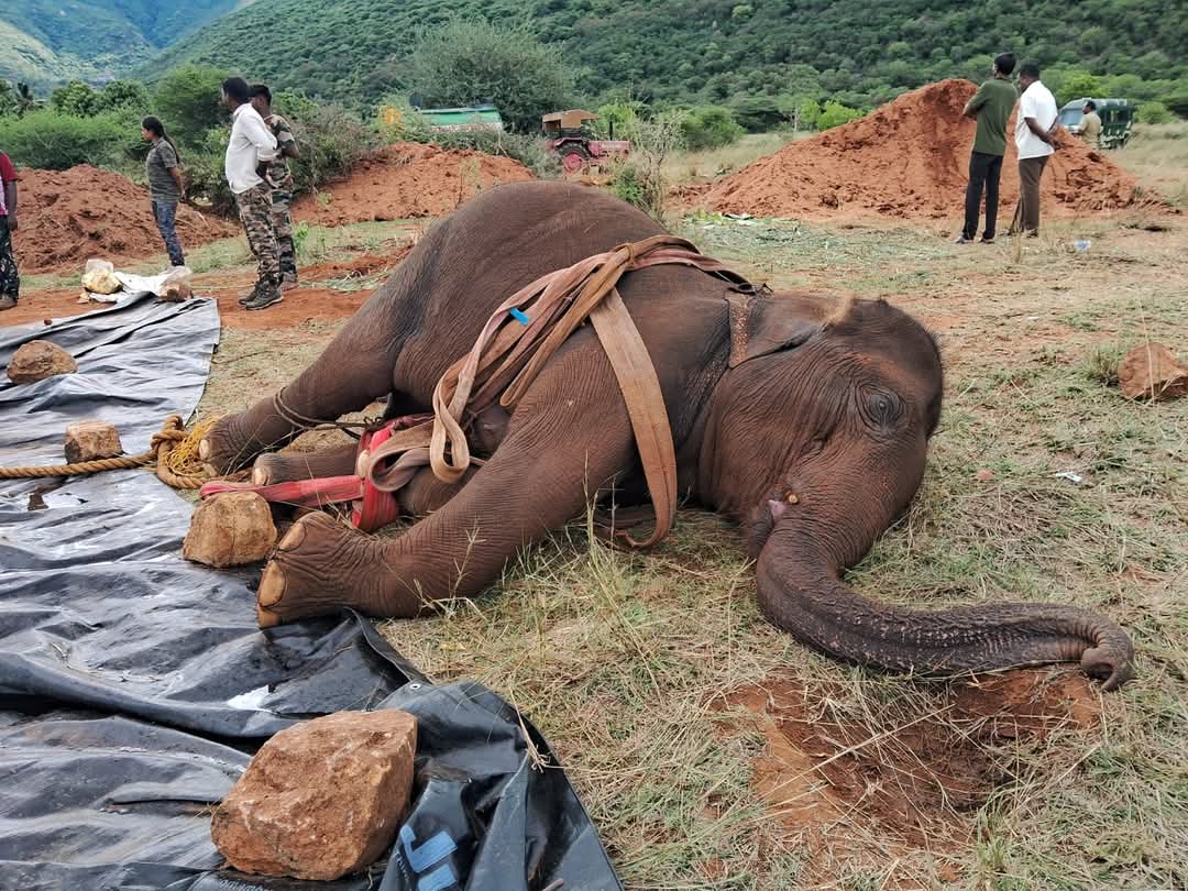 கோடையின் வறட்சி காரணமாக உணவு மற்றும் தண்ணீர் தேடி வனத்தை விட்டு குட்டியுடன் வெளியேறிய தாய் யானை ஒன்று திடீரென மயங்கி விழுந்து உடல்நிலை குறைவு ஏற்பட்டது. இதை அடுத்து தாய் யானைக்கு ஆனைமலை புலிகள் காப்பகத்தில் இருந்து கும்கி யானை துரியன் சுயம்பு என்ற 2 யானை கொண்டு வரப்பட்டு இரண்டு யானைகள் உதவியுடன் வனத் துறையினர் தீவிர சிகிச்சை அளித்து வந்தனர்.