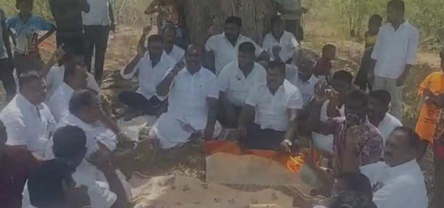 இதனை தொடர்ந்துகாவலர்கள் முத்துலிங்காபுரத்தில் தடுத்து நிறுத்தியதால் தரையில அமர்ந்து போராட்டத்தில் ஈடுபட்ட நிலையில் இந்த தகவலை தெரிந்த போலீசார் அவரிடம் பேச்சுவார்த்தை நடத்தினர். இதனைத் தொடர்ந்து இந்த தகவல் அறிந்த சத்திரப்பட்டி கிராம பொதுமக்கள் திரண்டு முத்துலிங்கபுரத்திற்கு பொதுமக்கள் திரண்டு ஆர்.பி உதயகுமாரிடம் கோரிக்கை மனு வழங்கினர்
