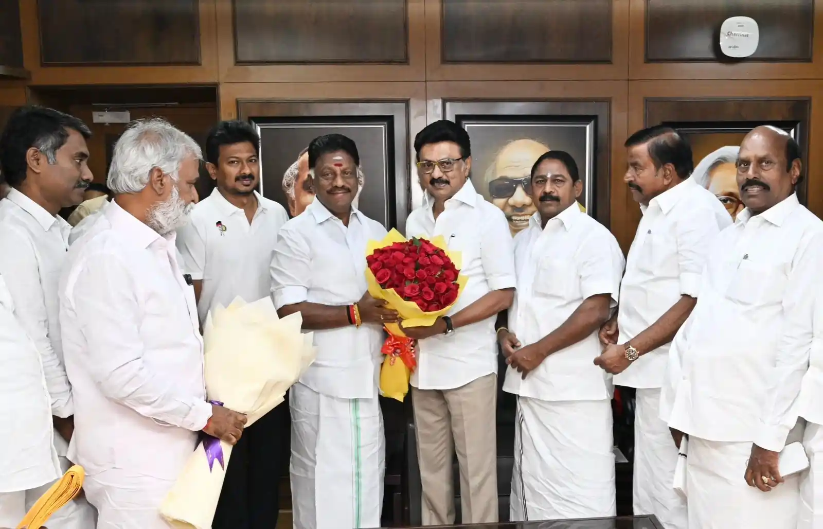 தமிழ்நாட்டின் அரசியல் வரலாற்றில் ஒரு கட்சியில் 3 முறை முதலமைச்சராக பதவி வகித்தவர், வேறொரு கட்சியில் இணைந்தது இதுவே முதல்முறை. ஓபிஎஸ் திமுகவில் இணைந்தது வரலாற்றில் பதிவானது. தி.மு.க.வில் இணைந்த பின் முன்னாள் முதலமைச்சர் ஓ.பன்னீர்செல்வம் சென்னை அறிவாலயத்தில் செய்தியாளர்களுக்கு பேட்டி அளித்தார்.
