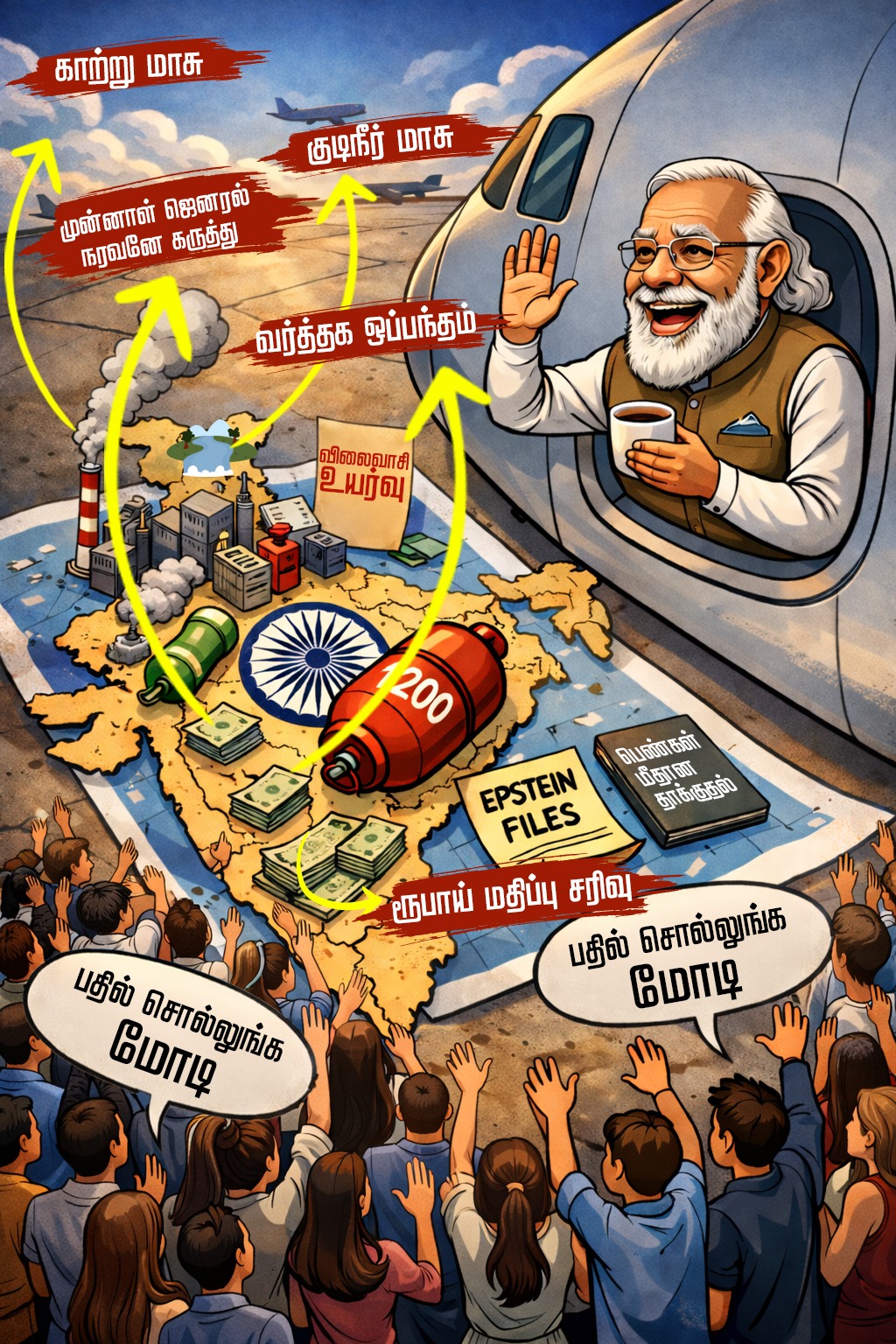 தமிழ்நாடு காங்கிரஸ் கமிட்டியின் அதிகாரப்பூர்வ ட்விட்டர் பக்கமான @INCTamilNadu)-வில் மோடி அரசை விமர்சிப்பது போன்ற கேலிச் சித்திரம் ஒன்று பதிவேற்றப்பட்டிருந்தது.