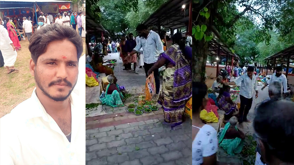 வயதான மூதாட்டி ஒருவர் சிறிய தட்டுகளில் மிளகாய் வியாபாரம் செய்து வந்துள்ளார்
