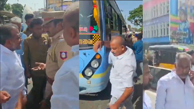 இதனிடையே அங்கு சமாதான பேச்சு வார்த்தையில் காவல் துறையினர் ஈடுபட்ட நிலையில் திடீரென அங்கு வந்த திமுக மாவட்ட துணை செயலாளர் கோட்டை அப்பாஸ் சீருடையில் இருந்த காவல் உதவி ஆய்வாளரிடம் கடும் கோபத்துடன் ” திமுகவினர் என்ன பைத்தியக்காரனா என்றும் நீ என்ன ரவுடியா உன் சட்டையை கழட்டாமல் விடமாட்டேன்” என்று காவல் உதவி ஆய்வாளரை ஒருமையில் பேசியதுடன் அவருக்கு கடுமையான வார்த்தைகளால் நேரடி மிரட்டல் விடுத்தார். தொடர்ந்து திமுகவினர் அப்பகுதியில் சிறிது நேரம் மறியலிலும் ஈடுபட்டனர். சப்இன்ஸ்பெக்டரை திமுக நிர்வாகி மிரட்டும் வீடியோ வெளியாகி வைரல் ஆகி வருகிறது.