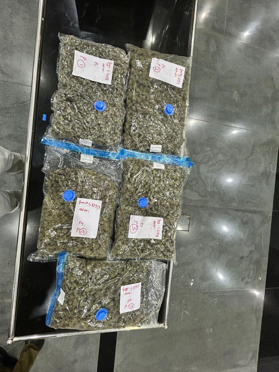 கோவை விமான நிலையத்தில் ஐந்து கோடி ரூபாய் மதிப்பிலான கஞ்சா பறிமுதல் செய்யப்பட்டு உள்ளது.