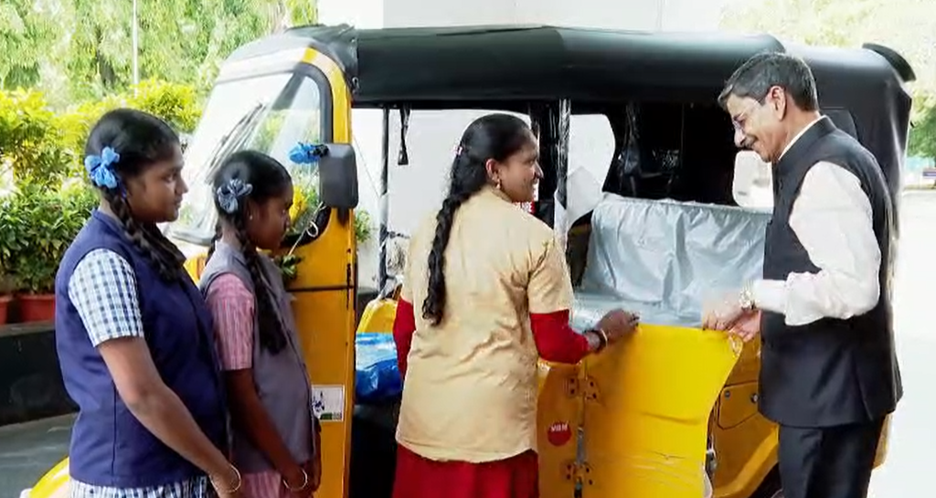 சொந்த ஆட்டோ இருந்தால் குடும்பத்தை நன்றாக பார்த்துக் கொள்ள ஏதுவாக இருக்கும் என்று கோரிக்கை வைத்த பெண்ணுக்கு சொந்த ஆட்டோ வாங்கி தந்த ஆளுநர் ஆர்.என்.ரவி.