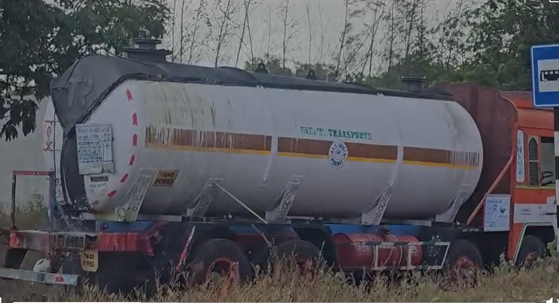 டேங்கர் லாரியிலிருந்து வெளியாகி வரும் 16,000 லிட்டர் ஹைட்ரோ குளோரிக் ஆசிட் – பொதுமக்களுக்கு பாதிப்பு ஏற்படாமல் தடுக்க தீயணைப்பு துறையினர் தண்ணீர் ஊற்றி குளிர்வித்தனர்.