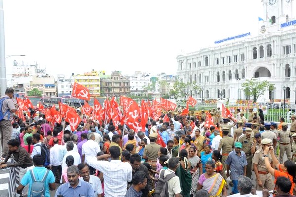 இந்நிலையில், சென்னை மாநகராட்சியில் 5 மற்றும் 6ஆவது மண்டலத்தில் பணியாற்றிய தூய்மை பணியாளர்கள் 71 நாட்களாக பணியில்லாமல் இருப்பதாக கூறி இன்று சென்னை ரிப்பன் மாளிகை முன்பு, உழைப்போர் உரிமை இயக்கம் சார்பில் போராட்டம் நடத்த இருப்பதாக கிடைத்த தகவலின் பெயரில் காவல்துறை குவிக்கப்பட்டுள்ளது.