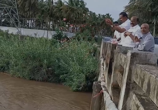 கோவை மாவட்டத்தில் பெய்து வரும் பருவமழையால் நொய்யலாற்றில் நீர்வரத்து அதிகரித்துள்ளது. முன்னாள் அமைச்சரும், அ.தி.மு.க தலைமை நிலையச் செயலாளருமான எஸ்.பி. வேலுமணி, தொண்டாமுத்தூர் சட்டமன்றத் தொகுதிக்குட்பட்ட தென்னமநல்லூரில் நொய்யலாற்றில் பொங்கி வரும் தண்ணீரை மலர் தூவி வரவேற்றார்.