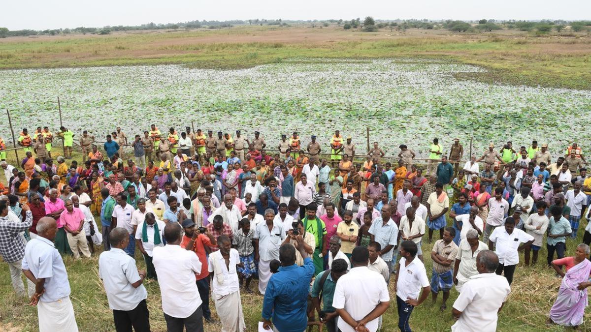 பரந்தூர் விமான நிலைய பணிகளுக்கு விவசாய நிலங்கள் கையகப்படுத்தும் விவகாரத்தில் தலைமைச் செயலகம் வந்து போராட்டம் செய்வேன் என தவெக தலைவர் விஜய் கூறியிருந்த நிலையில், இப்போது கிராம மக்களே தங்கள் நிலங்களை கொடுத்து பத்திரப்பதிவு செய்து வருவது குறிப்பிடத்தக்கது.
