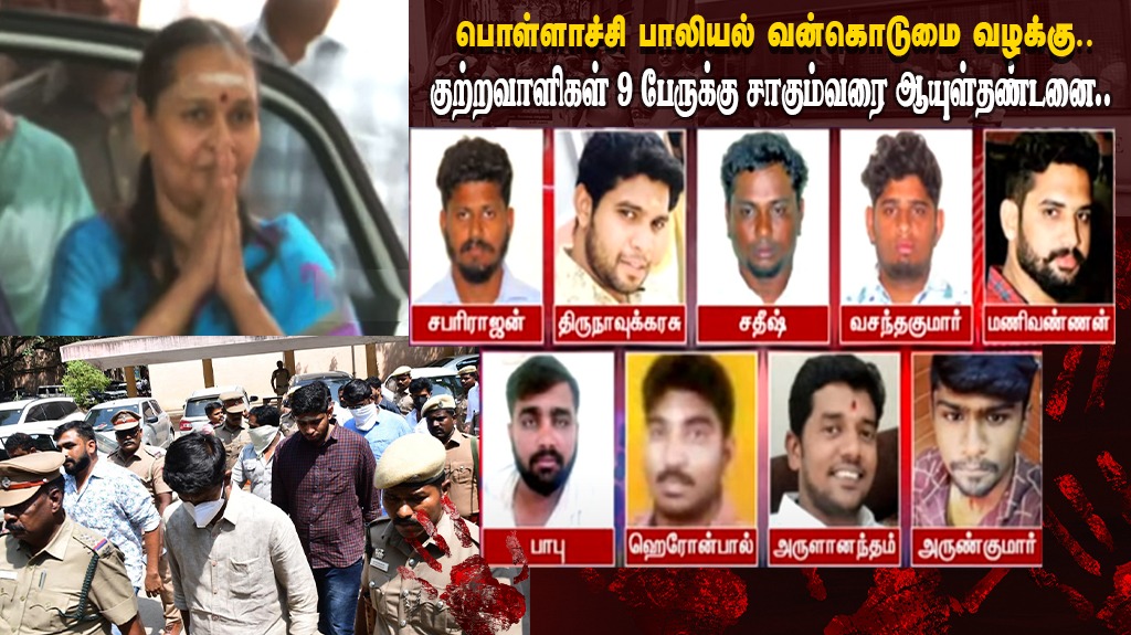 பொள்ளாச்சி பாலியல் வன்கொடுமை வழக்கு.. குற்றவாளிகள் 9 பேருக்கு சாகும்வரை ஆயுள்தண்டனை..