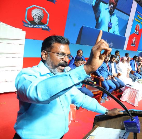ஏதோ திருநீற்றை அழித்துவிட்டான் திருமாவளவன் என்று அரசியல் பேசுகிறார்கள். எப்படியாவது எங்களை பற்றி பேசி கொண்டே இருங்கள். எதிராகவோ, ஆதரவாகவோ எங்களை பற்றி பேசிக் கொண்டே இருங்கள். ஏனென்றால் நாங்கள் தேசத்தை திருப்பி அமைப்பதற்காக, புதுப்பித்து கட்டமைப்பதற்காக, புதிய இந்தியாவை உருவாக்குவதற்காக, அம்பேத்கரின் கனவை நனவாக்குவதற்காக போராடி கொண்டு இருப்பவர்கள். எங்களை வெறும் டீ, பன் கொடுத்து ஏமாற்றிவிடலாம் என்று நீங்கள் கணக்கு போடாதீர்கள்.