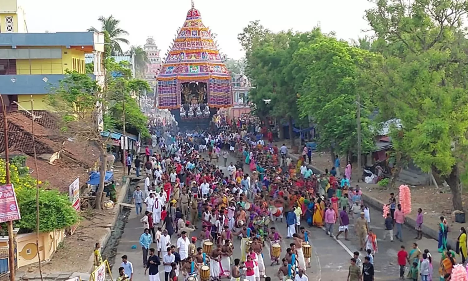 காரைக்கால் அடுத்த திருநள்ளாறில் அமைந்துள்ள உலக பிரசித்தி பெற்ற ஸ்ரீசனிஸ்வர பகவான் ஆலயத்தில் வைகாசி விசாக பிரம்மோற்சவ விழாவின் முக்கிய நிகழ்ச்சியான திருத்தேரோட்டம் நடைபெற்றது. ஏராளமான பக்தர்கள் செண்பக தியாகராஜர், அம்பாள் உள்ளிட்ட 5தேர்களை வடம் பிடித்து இழுத்து சுவாமி தரிசனம் செய்தனர்.