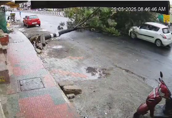 மரம் சாய்ந்த சமயத்தில் அவ்வழியே வந்த ஒரு கார், சரியான நேரத்தில் நிறுத்தப்பட்டதால் பெரும் அசம்பாவிதம் தவிர்க்கப்பட்டது.