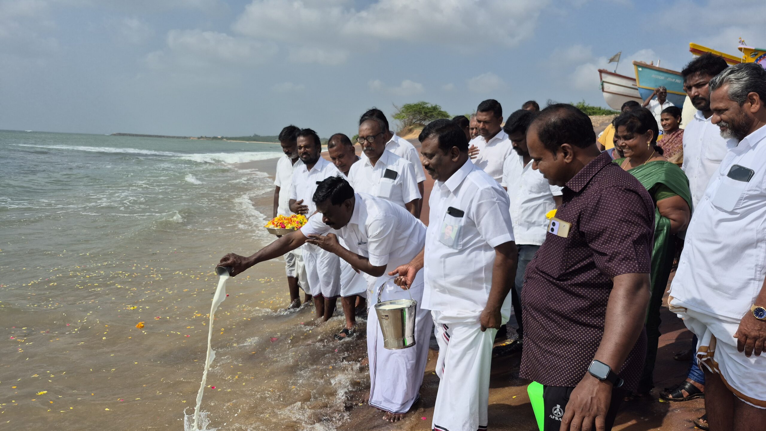 சுனாமி நினைவு தினத்தையொட்டி, கடலில் பால் ஊற்றியும், பூக்களை தூவியும் பொதுமக்கள் இன்று அஞ்சலி செலுத்தி வருகின்றனர்.