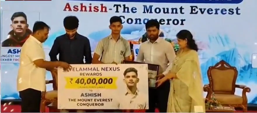 எவரெஸ்ட் சிகரம் எட்டிய மாணவர் ஆஷிஷ்-ஐ, வேலம்மாள் நெக்ஸஸ் சிறப்பாக கௌரவித்து – 40 லட்சம் ரொக்க பரிசு வழங்கி உள்ளது.