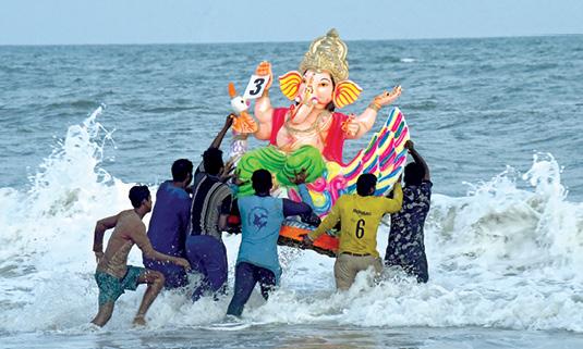 விநாயகர் சதுர்த்தியை முன்னிட்டு சென்னையில் பல இடங்களில் ஆயிரக்கணக்கான விநாயகர் சிலைகள் வைக்கப்பட்டன. ஒருவாரம் அக்டந்த நிலையில் இந்த சிலைகளை சென்னை பட்டினம்பாக்கம் கடற்கரை பகுதியில் கரைக்க போலீசார் அனுமதி அளித்தனர். அந்த வகையில் நேற்று காலை 10 மணி முதல் ஆயிரக்கணக்கான சிலைகள் போலீசாரின் பாதுகாப்புடன் ஊர்வலமாக கொண்டு செல்லப்பட்டு கடலில் கரைக்கப்பட்டன.