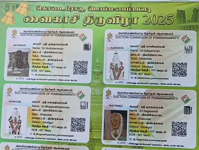 அம்மனுக்கே வாக்காளர் அட்டை: திண்டுக்கல் கொடைரோடு திருவிழாவில் வித்தியாசமான ஏற்பாடு!