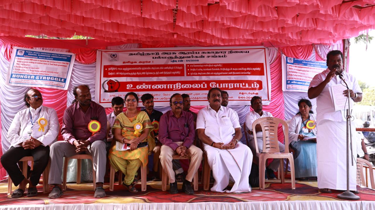 பணிநிரந்தரம் உள்ளிட்ட பல்வேறு கோரிக்கைகளை வலியுறுத்தி, சென்னையில் உண்ணாநிலைப் போராட்டம் நடத்திய தமிழ்நாடு அரசு ஆரம்ப சுகாதார நிலைய பல் மருத்துவர்களுக்கு காங்கிரஸ் கட்சி ஆதரவு தெரிவித்தது.